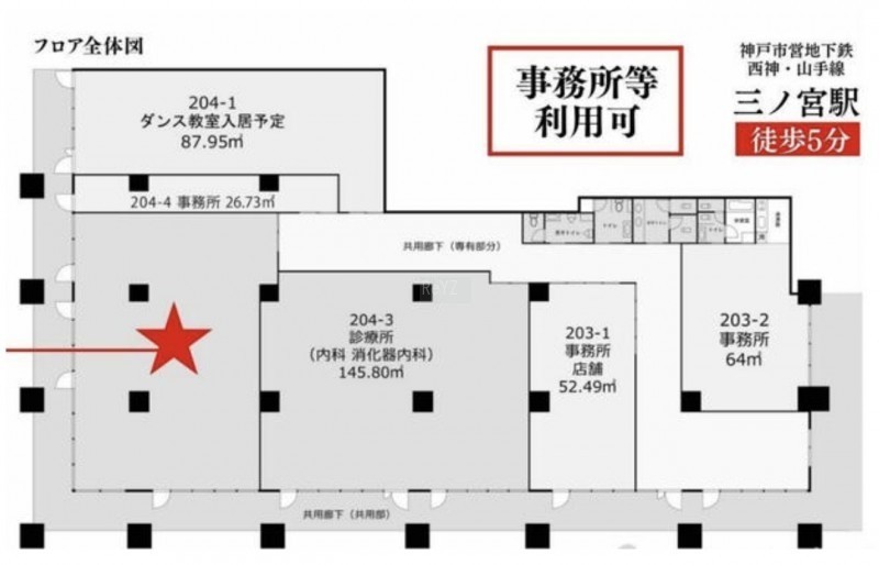 | 交通 | 三ノ宮駅(徒歩8分)|神戸三宮駅(徒歩8分) |