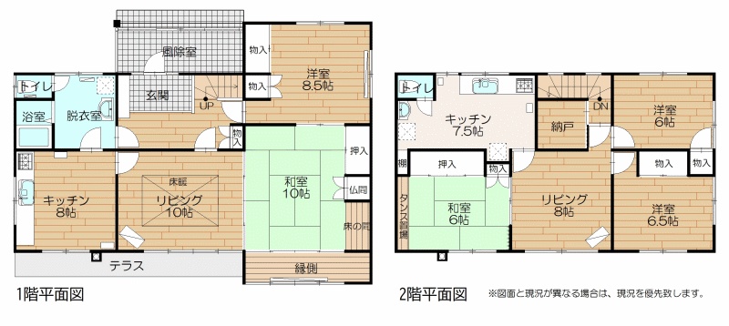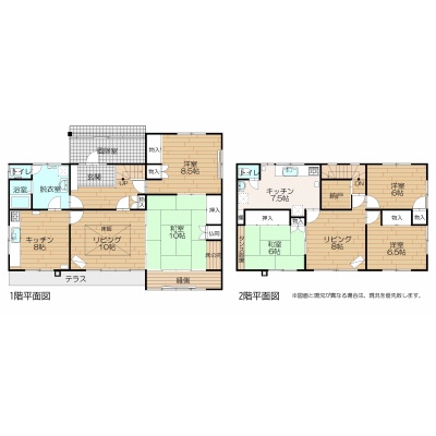 二世帯型(164.7m²)└ 1階:L10帖 K8帖 洋室8.5帖 和室10帖 / 2階:L8帖 S2帖 / その他:K7.5帖 洋室6.5帖 洋室6帖 和室6帖
