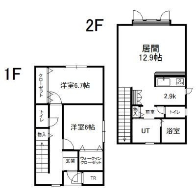 2LDK(86.45m²)└ 1階:洋室6.7帖 洋室6帖 / 2階:LD12.9帖 K2.9帖