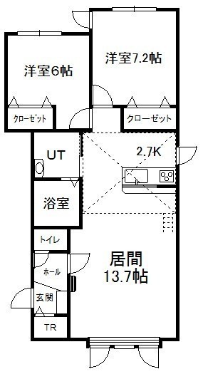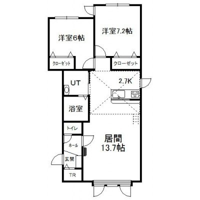 2LDK(68.62m²)└ 2階:LD13.7帖 K2.7帖 洋室7.2帖 洋室6帖