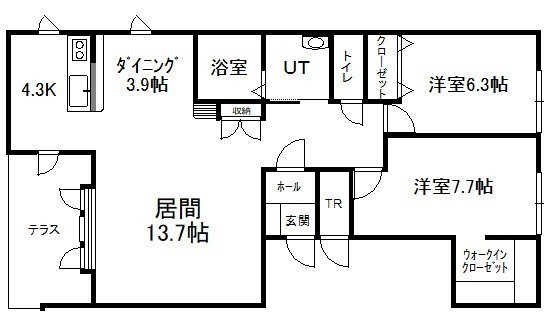 2LDK(83.63m²)└ 1階:L13.7帖 D3.9帖 K4.3帖 洋室7.7帖 洋室6.3帖