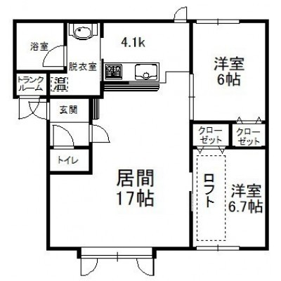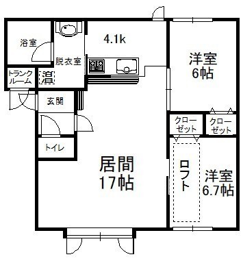 2LDK(70.74m²)└ 2階:LD17帖 K4.1帖 洋室6.7帖 洋室6帖