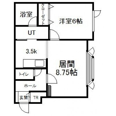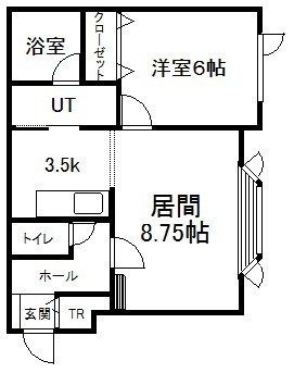1LDK(45.13m²)└ 2階:LD8.75帖 K3.5帖 洋室6帖