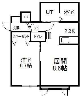 1LDK(45.36m²)└ 1階:LD8.6帖 K2.3帖 洋室6.7帖