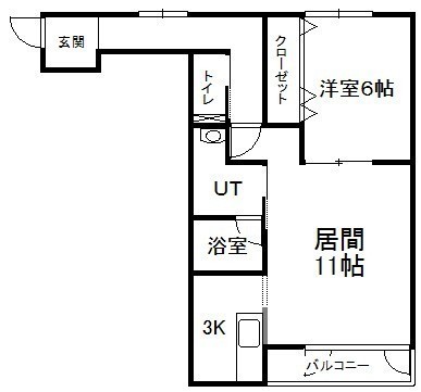 1LDK(49.21m²)└ 2階:LD11帖 K3帖 洋室6帖