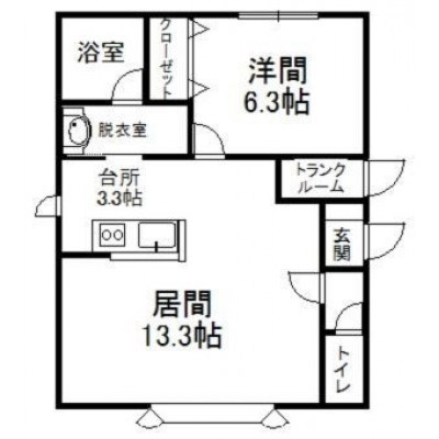 1LDK(51.09m²)└ 1階:LD13.3帖 K3.3帖 洋室6.3帖