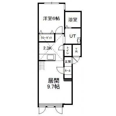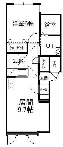 1LDK(46.38m²)└ 2階:LD9.7帖 K2.3帖 洋室6帖