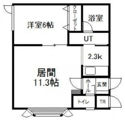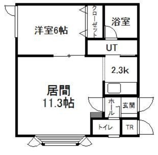 1LDK(43.47m²)└ 2階:LD11.3帖 K2.3帖 洋室6帖