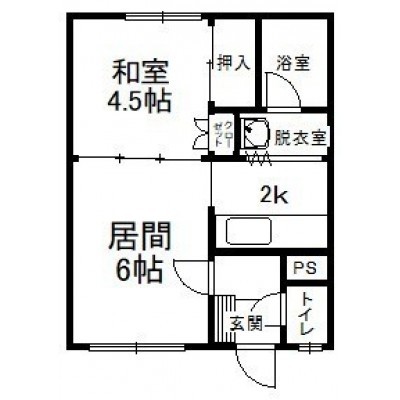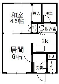 1DK(28.89m²)└ 2階:D6帖 K2帖 和室4.5帖