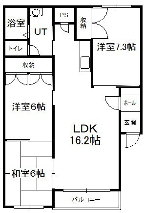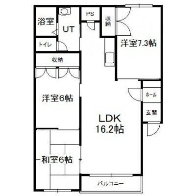 3LDK(75.15m²)└ 4階:LDK16.2帖 洋室7.3帖 洋室6帖 和室6帖