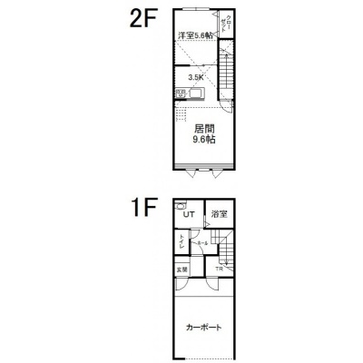 1LDK(72.14m²)└ 2階:LD9.6帖 K3.5帖 洋室5.6帖