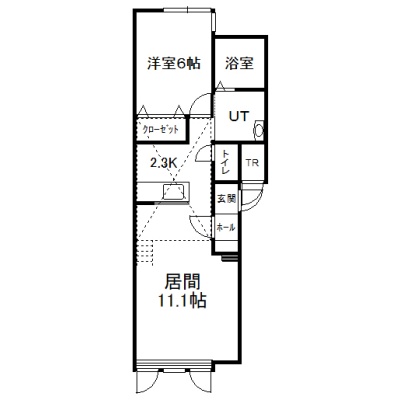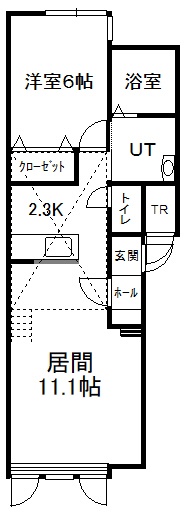1LDK(47.73m²)└ 2階:LD11.1帖 K2.3帖 洋室6帖