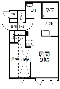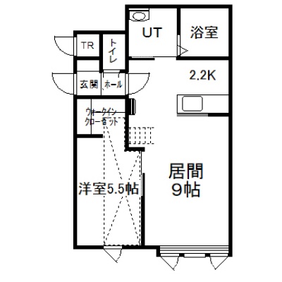 1LDK(44.22m²)└ 2階:LD9帖 K2.2帖 洋室5.5帖