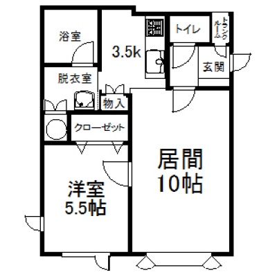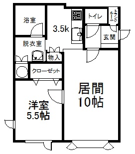 1LDK(45.03m²)└ 1階:LD10帖 K3.5帖 洋室5.5帖