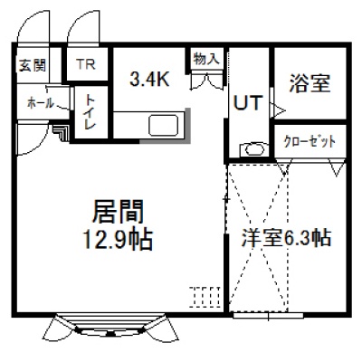 1LDK(50.22m²)└ 2階:LD12.9帖 K3.4帖 洋室6.3帖