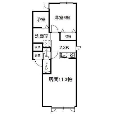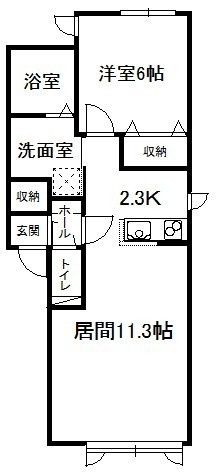1LDK(49.11m²)└ 2階:LD11.3帖 K2.3帖 洋室6帖