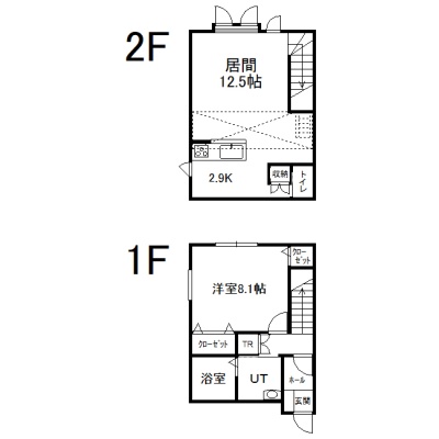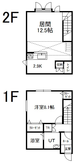 1LDK(63.25m²)└ 1階:洋室8.1帖 / 2階:LD12.5帖 K2.9帖