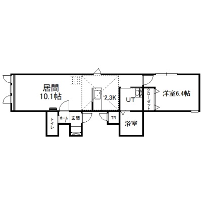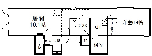 1LDK(48.42m²)└ 2階:LD10.1帖 K2.3帖 洋室6.4帖