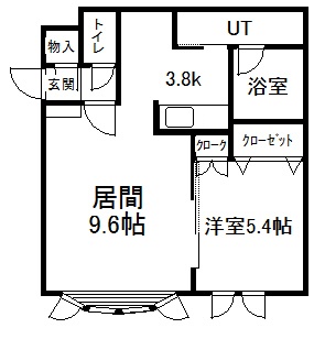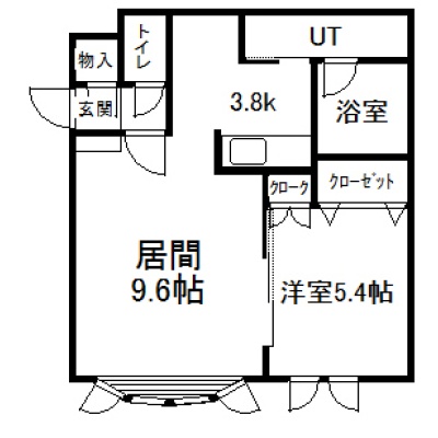 1LDK(42.75m²)└ 2階:LD9.6帖 K3.8帖 洋室5.4帖