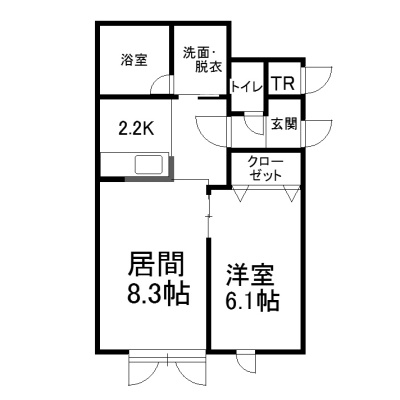 1LDK(41.25m²)└ 2階:LD8.3帖 K2.2帖 洋室6.1帖
