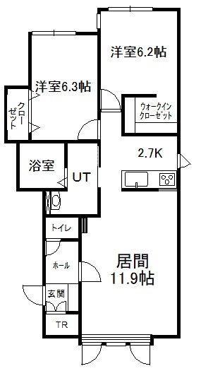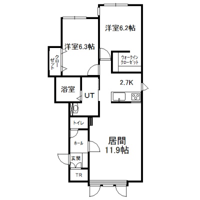 2LDK(65.86m²)└ 1階:LD11.9帖 K2.7帖 洋室6.3帖 洋室6.2帖