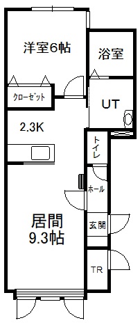 1LDK(46.93m²)└ 1階:LD9.3帖 K2.3帖 洋室6帖