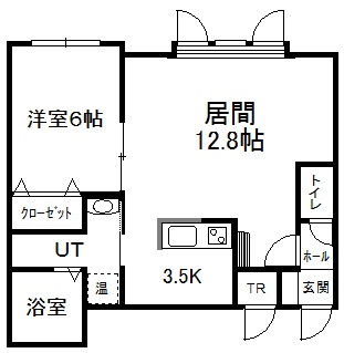 1LDK(50.54m²)└ 1階:LD12.8帖 K3.5帖 洋室6帖