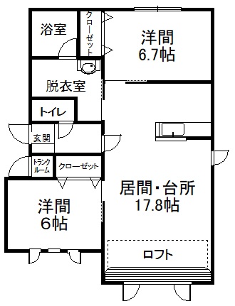 2LDK(67.83m²)└ 2階:LDK17.8帖 洋室6.7帖 洋室6帖