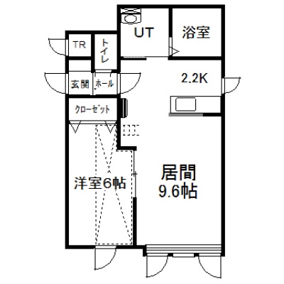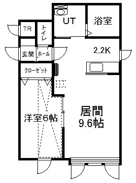 1LDK(44.28m²)└ 2階:LD9.6帖 K2.2帖 洋室6帖