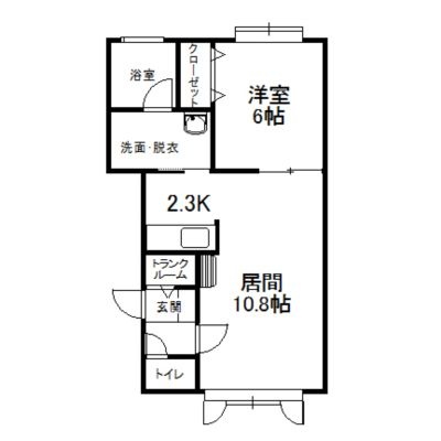 1LDK(45.77m²)└ 2階:LD10.8帖 K2.3帖 洋室6帖