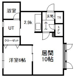 1LDK(44.5m²)└ 2階:LD10帖 K2.9帖 洋室6帖