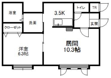 1LDK(46.64m²)└ 1階:LD10.3帖 K3.5帖 洋室6帖