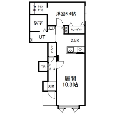 1LDK(53.3m²)└ 1階:LD10.3帖 K2.5帖 洋室6.4帖