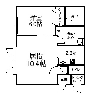 1LDK(46.03m²)└ 2階:LD10.4帖 K2.8帖 洋室6帖