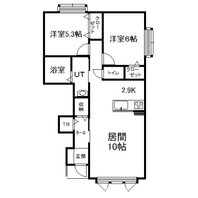 2LDK(63.73m²)└ 1階:LD10帖 K2.9帖 洋室6帖 洋室5.3帖
