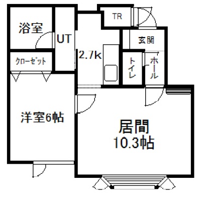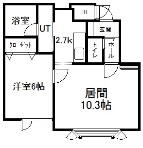 1LDK(44.14m²)└ 2階:LD10.3帖 K2.7帖 洋室6帖