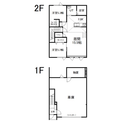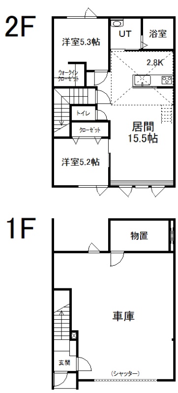 2LDK(117.58m²)└ 2階:LD15.5帖 K2.8帖 洋室5.3帖 洋室5.2帖