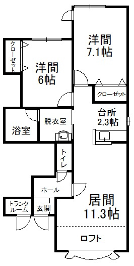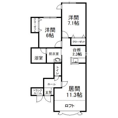 2LDK(61.8m²)└ 2階:LD11.3帖 K2.3帖 洋室7.1帖 洋室6帖