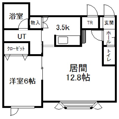 1LDK(50.54m²)└ 1階:LD12.8帖 K3.5帖 洋室6帖