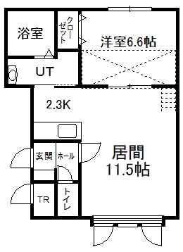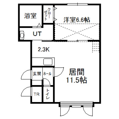 1LDK(47.22m²)└ 2階:LD11.5帖 K2.3帖 洋室6.6帖