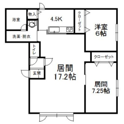 2LDK(73.25m²)└ 1階:LD17.2帖 K4.5帖 洋室7.25帖 洋室6帖