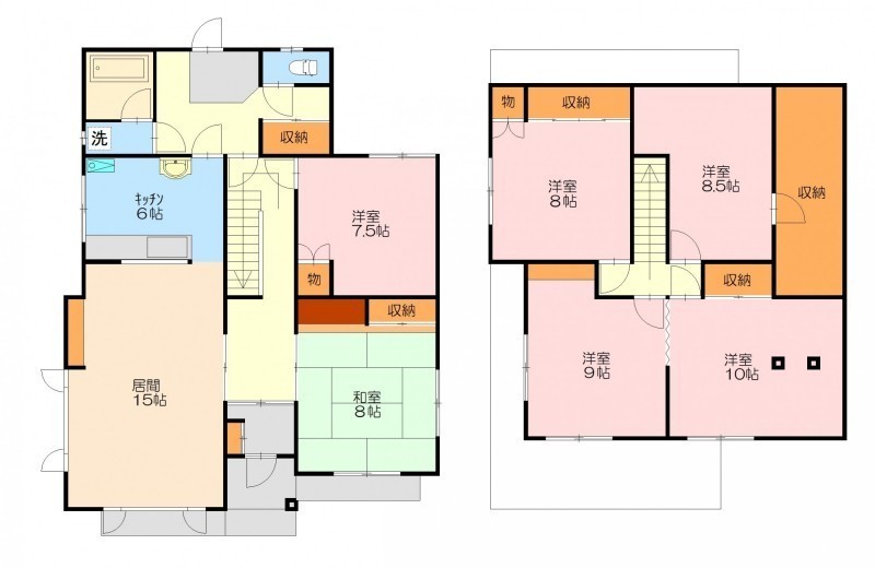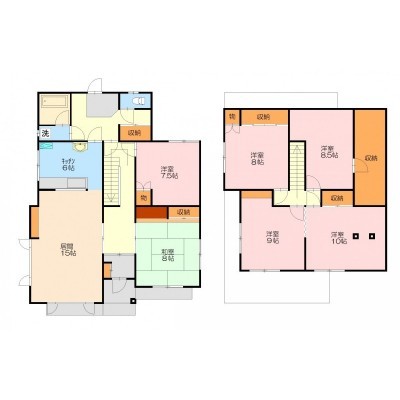 6LDK(179.99m²)└ 1階:LD15帖 K6帖 和室8帖 洋室7.5帖 / 2階:洋室10帖 洋室9帖 洋室8.5帖 洋室8帖