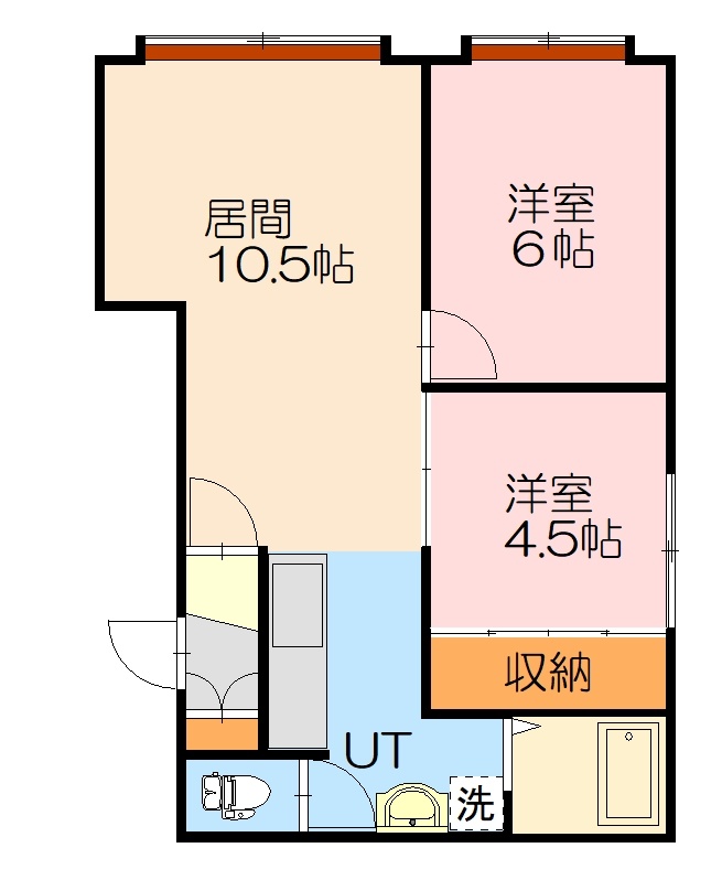 2LDK(52.04m²)└ LD10.5帖 K2.5帖 洋室6帖 洋室4.5帖