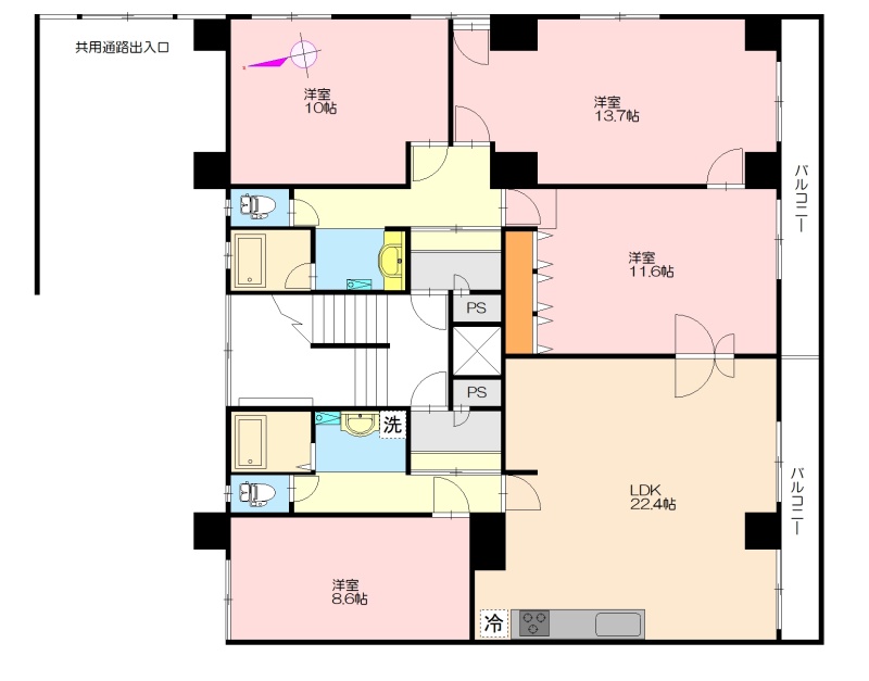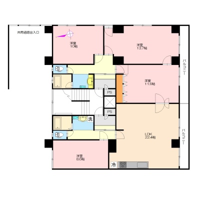 4LDK(155.68m²)└ LDK22.4帖 洋室8.6帖 洋室11.6帖 洋室13.7帖 その他10帖