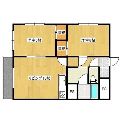2DK└ DK10帖 洋室6帖 洋室6帖