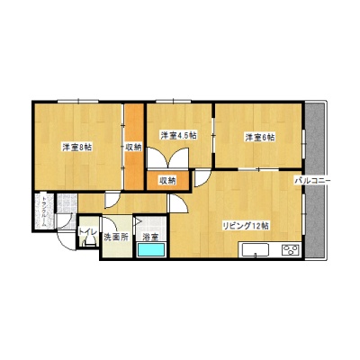 3DK(70m²)└ LDK12帖 洋室8帖 洋室6帖 洋室4.5帖
