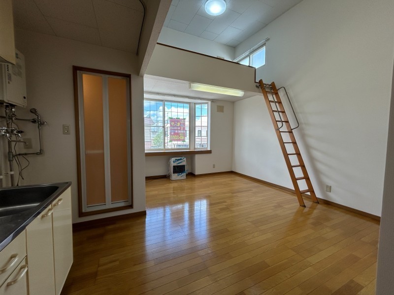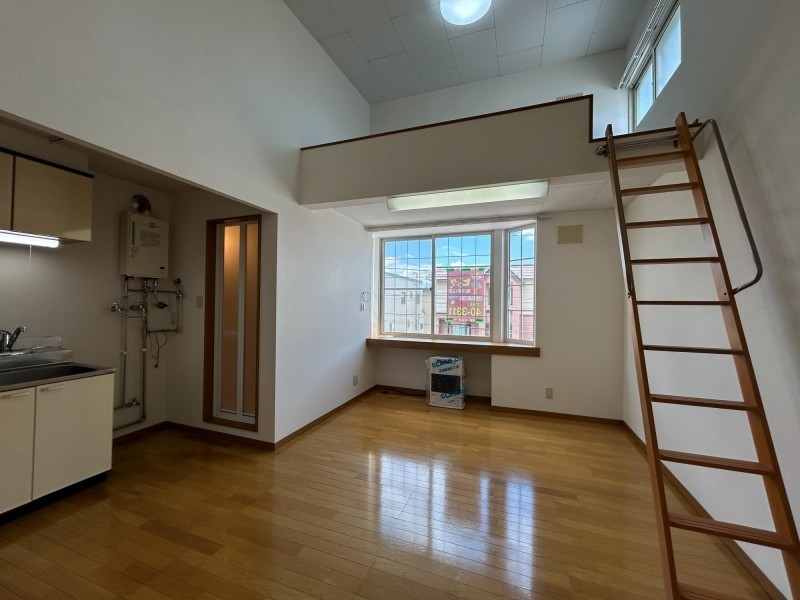 ここに注目!ロフト付きの2階角部屋1LDKです♪保証人不要(保証会社利用)で契約可能! エアコン設置応相談、灯油暖房完備。スーパー、コンビニ、ドラッグストアが徒歩10分圏内、バス停も徒歩4分と利便性の良い立地です♪