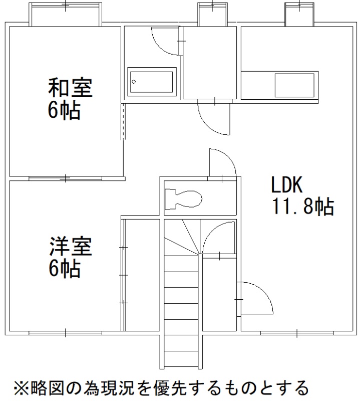 2LDK(55.08m²)└ 2階:LDK11.8帖 和室6帖 洋室6帖