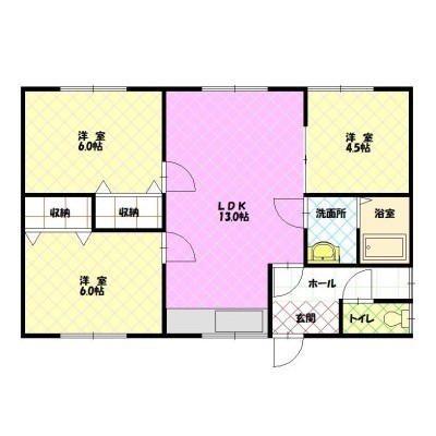 3LDK(62.37m²)└ LDK13×洋6×洋6×洋4.5