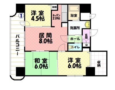 3LDK(58.13m²)└ LD8×K2×洋6×和6×洋4.5